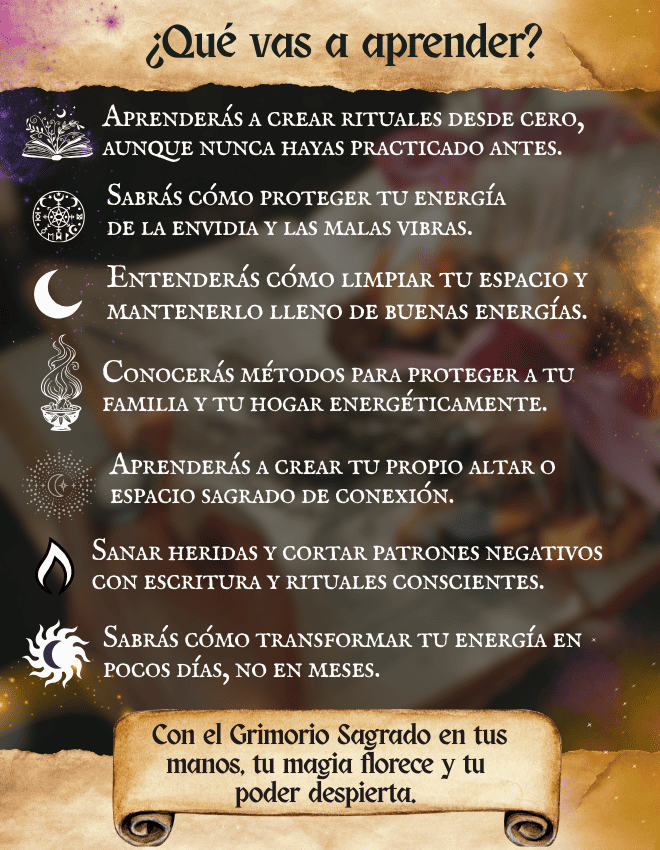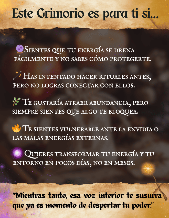 ¡Para nada! 🪄 El Grimorio está diseñado para principiantes y avanzados. Si nunca hiciste un ritual, tendrás instrucciones simples paso a paso. Y si ya practicaste, descubrirás nuevas formas de potenciar tu energía.